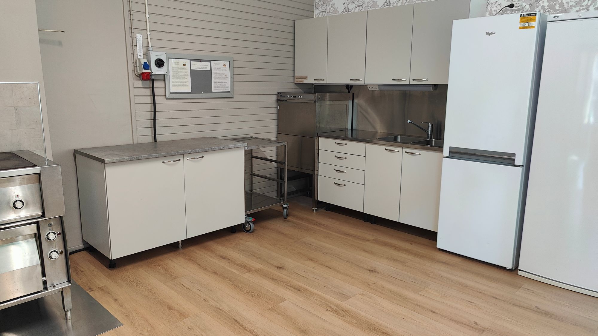 Majaalahden kylätalon keittiö on tilava ja hyvin varusteltu ja se soveltuu hyvin omien ruokien valmistamiseen, lämmittämiseen ja loppuvalmisteluihin tai pitopalvelun käyttöön. Käytössä on hella, uuni, mikroaaltouuni, tuplakahvinkeitin, iso kahvitermos, vedenkeitin, kaksi jääkaappia, pakastin ja helppokäyttöinen ja nopea teollisuustiskikone.